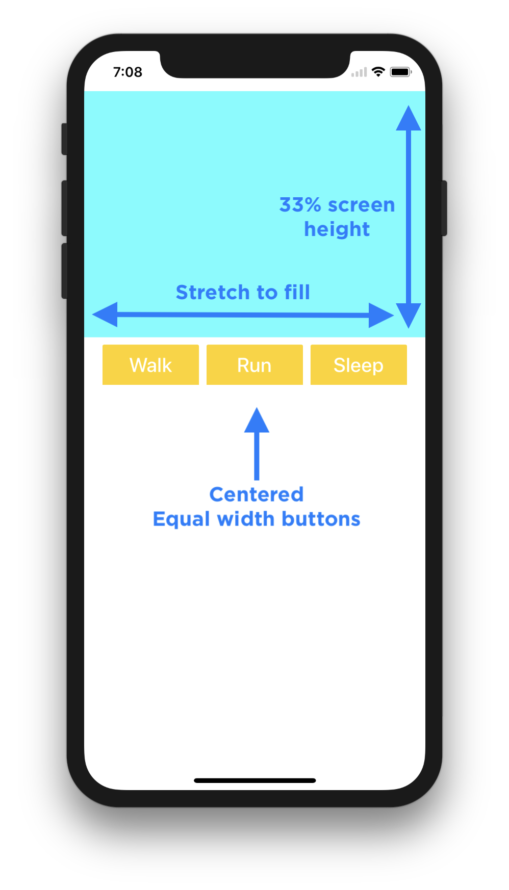 Auto Layout allows you to define regions to fill a percentage of your iPhone X screen size, to center horizontally, or to maintain equal widths.